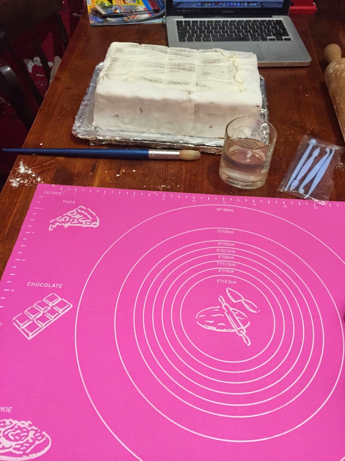 Kõige pealt rullisin valge suhkrumassi ja tegin sellest raamatu lehed,